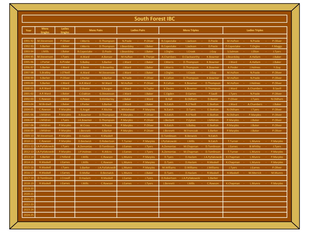 South Forest IBC Honours Board